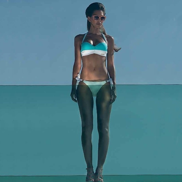 水色と白のおしゃれなブラジリアンバンドゥービキニ。
