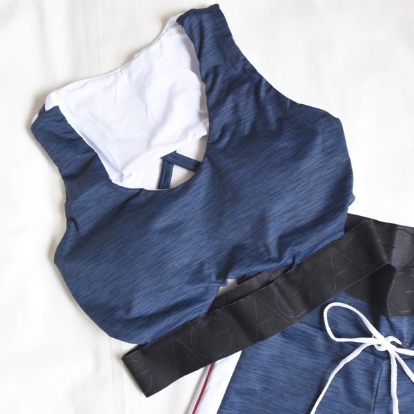 ネイビーに白が映えるフィットネストップス!
