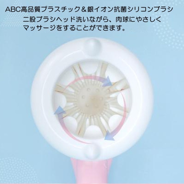 ・ 高品質プラスチック&銀イオン抗菌シリコンブラシ使用 ・ 簡単な構造なので、分解と清潔が便利 ・ 二股ブラシヘッドで洗浄力抜群 |