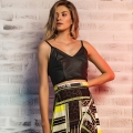 お腹をチラ見せしても、ハイウエストのボトムスと合わせてもかわいい!
